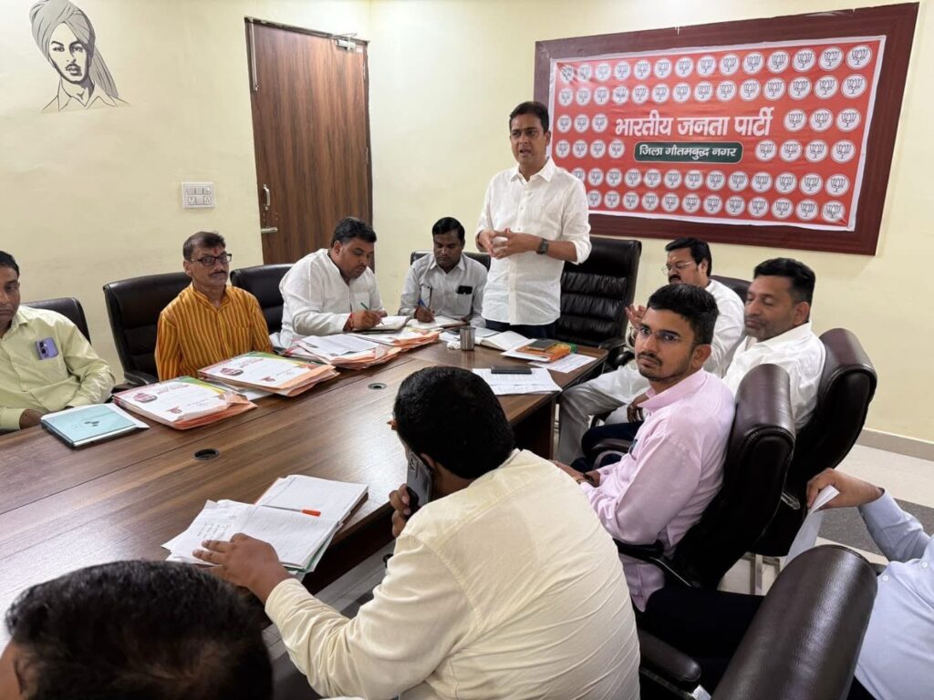 गौतम बुद्ध नगर भाजपा जिला कार्यालय तिलपता गोलचक्कर पर शिक्षक एवं स्नातक एमएलसी चुनाव को लेकर जिला संयोजक, सह संयोजक, मंडल अध्यक्ष एवं मंडल संयोजक गण के साथ महत्वपूर्ण बैठक आयोजित की गई।बैठक की अध्यक्षता ज़िलाध्यक्ष अभिषेक शर्मा ने की बैठक का संचालन जिला महामंत्री दीपक भारद्वाज धर्मेन्द्र कोरी ने किया ।बैठक में विस्तृत चुनावी रणनीति बनाई गई और हर बूथ स्तर तक कार्यकर्ताओं को सक्रिय करने की योजना पर चर्चा हुई। जिलाध्यक्ष अभिषेक शर्मा ने कहा कि सभी पदाधिकारियों ने मिलकर यह संकल्प लिया कि आने वाले चुनाव में भाजपा को ऐतिहासिक विजय दिलाई जाएगी।माननीय प्रधानमंत्री श्री नरेन्द्र मोदी जी के नेतृत्व और मार्गदर्शन में भाजपा का एक ही लक्ष्य है – चुनाव में प्रचंड जीत और संगठन को मज़बूत बनाना। कार्यकर्ताओं के उत्साह और जनता के विश्वास के बल पर जीत निश्चित है। इस अवसर पर मुख्य रूप से जिला महामंत्री धर्मन्द्र कोरी दीपक भारद्वाज राहुल पंडित इन्द्र नागर रवि जिंदल मीडिया प्रभारी कर्मवीर आर्य चन्द्रमणि भारद्वाज अर्पित तिवारी राजीव सिंघल सुनील ठाकुर गजेन्द्र वाल्मीकि संजय भाटी विशाल कुंमार आदि दर्जनों पदाधिकारी कार्यकर्ता बैठक में उपस्थित रहे ।