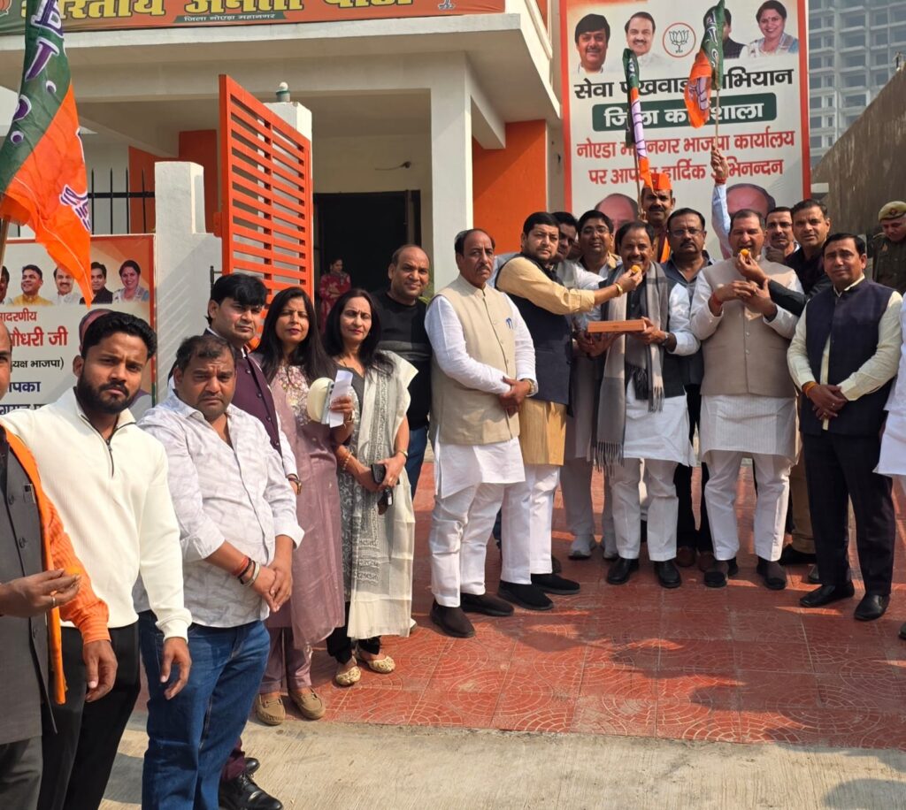 नोएडा। भारतीय जनता पार्टी नोएडा महानगर जिला कार्यालय सेक्टर-116 में आज कार्यकर्ताओं ने बिहार में पार्टी की प्रचंड जीत और प्रधानमंत्री मोदी के नेतृत्व में एनडीए को पूर्ण बहुमत मिलने पर जिला अध्यक्ष महेश चौहान को लड्डू खिलाकर बधाई दी। पूरा कार्यालय भारत माता की जय के नारों से गूंज उठा।