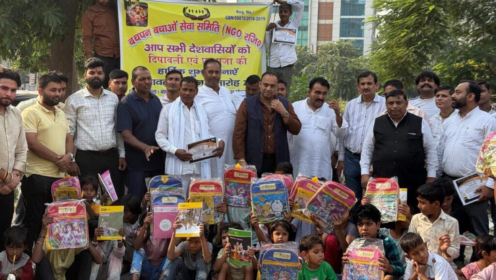 दीपावली की शाम जब शहर के घरों में रोशनी थी, तब सेक्टर-62 की झुग्गी झोपड़ियों में बच्चों की आँखों में नई चमक थी। वजह थी — संस्था द्वारा जरूरतमंद बच्चों के बीच कॉपी, किताबें, स्कूल बैग और मिठाइयाँ बाँटकर मनाया गया “दीपावली मिलन समारोह”।