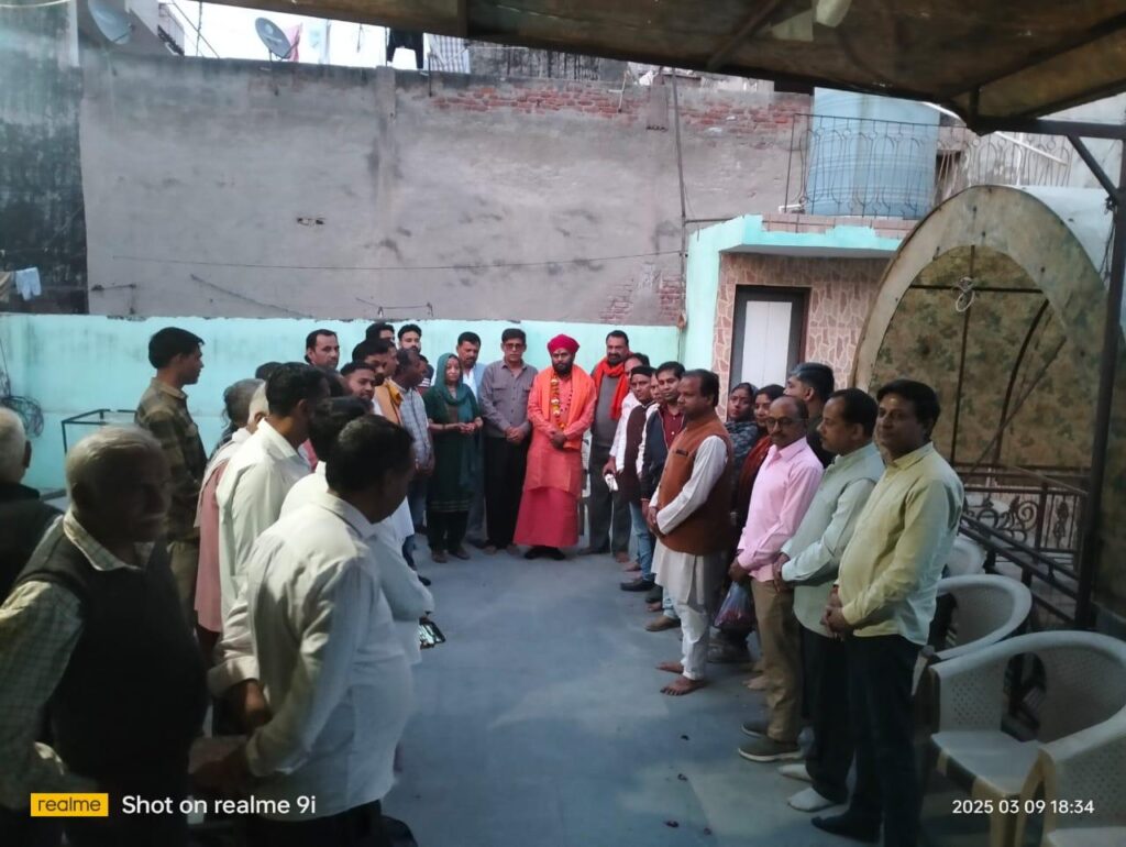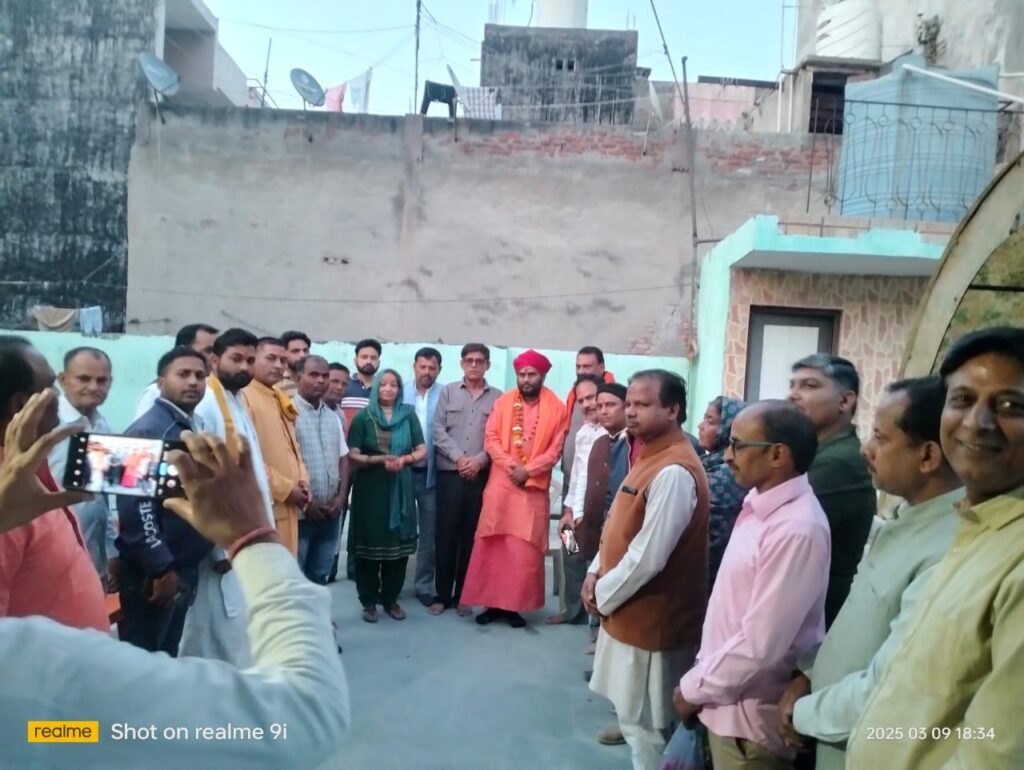 आज श्री राजेंद्र शर्मा जी के निवास स्थान भंगेल नोएडा गौतम बुध नगर में होली मिलन समारोह का आयोजन हुआ । जिसमें देश में चल रहे स्थिति के बारे में चर्चाएं हुई और सभी लोगों के बीच समन्वय और समरसता बनी रहे इन विषयों पर चर्चा हुई और अबीर गुलाल लगाकर सभी लोगों ने इस होली मिलन समारोह मैं भाग लिया इस अवसर पर शहर और कई क्षेत्रों से लोग एकत्रित हुए थे। जिन में मुख्यतः स्वामी आनंदी स्वर गिरि जी महाराज जी, डॉक्टर शिवकुमार जी (सिंगर पब्लिक स्कूल) श्री सूर्यकांत जी ,श्री राजेंद्र शर्मा जी ,श्री नरसिंह कुमार सचान जी, श्री राकेश प्रसाद जी, श्री नवाब सिंह चौधरी जी, श्री घनश्याम जी, श्री सचिन जी (खुर्जा )से उपस्थित रहे!