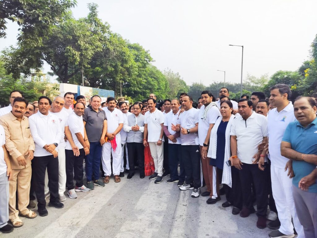 नोएडा। शिल्पहाट गेट नंबर 3, सेक्टर-33 पर शुक्रवार सुबह भारतीय जनता पार्टी नोएडा महानगर की ओर से लौह पुरुष सरदार वल्लभभाई पटेल की 150वीं जयंती के अवसर पर “Run for Unity” का भव्य आयोजन किया गया। जिला अध्यक्ष महेश चौहान के नेतृत्व में निकली इस दौड़ में कार्यकर्ताओं, युवाओं और नागरिकों ने बढ़-चढ़कर हिस्सा लिया।