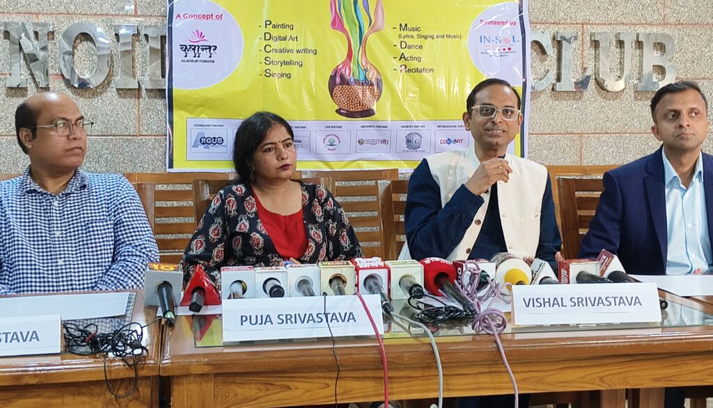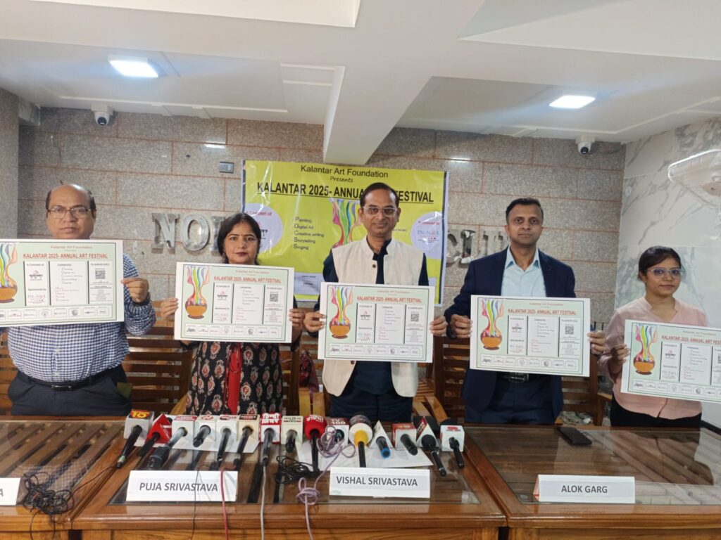 नोएडा। कला के क्षेत्र में अग्रणी समाजसेवी संस्था कलांतर आर्ट फाउंडेशन द्वारा आयोजित वार्षिक कला उत्सव का आरम्भ आगामी 28 जुलाई से होना तय हुआ है। शुक्रवार को नोएडा मीडिया क्लब में पत्रकारों से वार्ता करते हुए कलांतर आर्ट फाउंडेशन अध्यक्ष विशाल श्रीवास्तव ने बताया कि इस वर्ष कुल नौ विधाओं में राष्ट्रीय स्तर पर कला प्रतियोगिता का आयोजन किया जा रहा है। र्ट फाउंडेशन पिछले कई वर्षों से संस्था देश भर में छिपी हुई कला प्रतिभा को सामने लाने के लिए वार्षिक कला उत्सव आयोजित करती आ रही है।आधुनिक युवा वर्ग को कला से जोड़ने के लिए जहां एक ओर डिजिटल आर्ट की विधा को शामिल किया गया है, वहीँ वेद, पुराण और सनातन संस्कृति को सामने लाने के लिए संस्कृत श्लोक पाठ को शामिल किया गया है। इन प्रतियोगिताओं में देशभर की सरकारी, गैर-सरकारी स्कूल, कॉलेज के साथ ही देश भर के बंदीगृह, बाल सुधार गृह, नारी बंदी निकेतन, महिला आश्रम, वृद्धाश्रम, अनाथालय, एनजीओ के स्कूल आदि से भी प्रविष्टियां आमंत्रित की गयी हैं। इसके अतिरिक्त संस्कृति मंत्रालय की ओर से भी सभी क्षेत्रीय सांस्कृतिक केंद्र को प्रतिभागिता के लिए पत्र भेजा गया है। विशाल ने बताया कि यदि सब कुछ योजना के अनुसार हुआ, तो 5 लाख से भी अधिक लोगों की प्रतिभागिता से साथ ही कलांतर 2025 – राष्ट्रीय कला उत्सव, देश कला के क्षेत्र में देश की सबसे बड़ी प्रतियोगिता होगी।