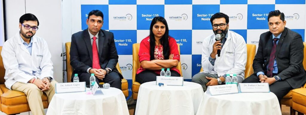 नोएडा। डायबिटीज़ अब सिर्फ बुजुर्गों की बीमारी नहीं रह गई है। युवाओं और बच्चों में भी यह तेजी से फैल रही है। वर्ल्ड डायबिटीज़ डे के अवसर पर यथार्थ अस्पताल, सेक्टर-110 नोएडा में आयोजित प्रेस कॉन्फ्रेंस में डॉक्टरों ने बताया कि ओपीडी में आने वाले हर पाँचवें मरीज को डायबिटीज़ की समस्या है। कोविड के बाद मामलों में उल्लेखनीय बढ़ोतरी देखी गई है।