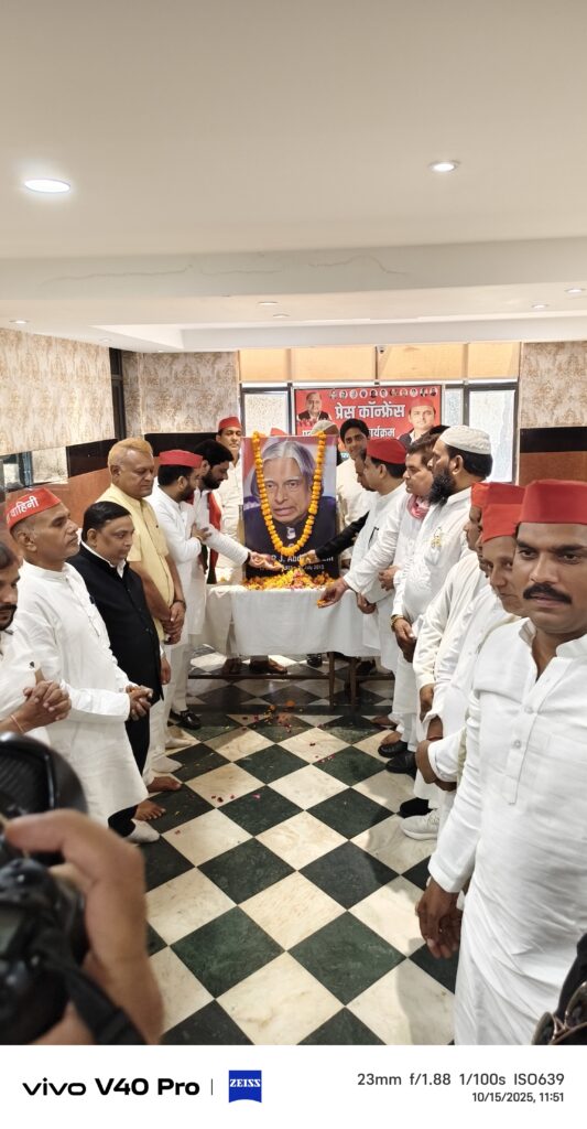 नोएडा। भारत रत्न डॉ. ए.पी.जे. अब्दुल कलाम की जयंती पर समाजवादी पार्टी नोएडा महानगर ने सेक्टर-33 स्थित अग्रसेन भवन में श्रद्धांजलि सभा का आयोजन किया। इस अवसर पर महानगर अध्यक्ष डॉ. आश्रय गुप्ता की अध्यक्षता में कार्यकर्ताओं ने डॉ. कलाम के चित्र पर पुष्प अर्पित कर उन्हें नमन किया और उनके दिखाए मार्ग पर चलने का संकल्प लिया।
